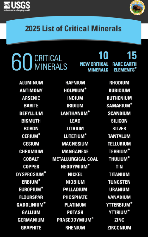 Тус жагсаалт нь АНУ-ын Геологийн албаны жагсаалт дахь 15 нэр төрлийн эрдэс бодисын асуудлыг шийдвэрлэхээр Америк, Хятад тохиролцсоноос хэдхэн хоногийн дараа гарч байгаа юм.