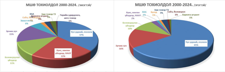 2000-2009 онд уул уурхайн салбарт бүртгэгдсэн эрэгтэйчүүдийн тохиолдол нийт эрэгтэйчүүдийн 61.8 хувийг эзэлж байсан бол 2020-2024 онд зөвхөн 5 жилд 263 тохиолдол бүртгэгдсэнээр нийт эрэгтэйчүүдийн 86 хувийг бүрдүүлсэн байна. Энэ нь уул уурхайн салбарт ажиллагсад өдөр тутмын ажлынхаа явцад доргилт, тоосжилт, дуу чимээ, химийн бодистой орчинд ажилладгаас энэ нь урт хугацааны туршид хуримтлагдсаар архаг МШӨ үүсэх үндэс болдог байна.
