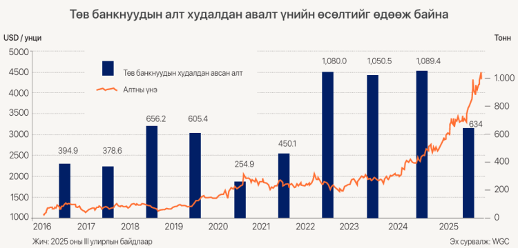 Төв банкнуудын алтны худалдан авалт сүүлийн 3 жил өсөлттэй байж эрэлтийг нэмэгдүүлсэн бол геополитикийн нөхцөл байдал, ам.долларын сулрал нь хөрөнгө оруулагчдыг алт руу хошуурах гол хөшүүрэг болов. Сүүлийн гурван жилтэй харьцуулахад 2025 онд Төв банкнуудын алтны худалдан авалт саарсан. 2025 оны эхний 3 улирлын байдлаар Төв банкнуудын худалдан авсан алтны хэмжээ 634 тонн байсан нь өмнөх оны мөн үеэс 14 хувиар буурсан дүн юм. Дэлхийн алтны зөвлөлийн мэдээллээр 2010 оноос хойш төв банкнууд жилд дунджаар 400–500 тонн алт худалдан авч байсан бол 2022-2024 онуудад энэ тоо 1,000 тонноос давж, түүхэн дээд түвшинд хүрсэн. Өмнөх 20 жилтэй харьцуулахад Төв банкнуудын цэвэр худалдан авалт бараг гурав дахин өссөн гэсэн үг. Хятад, ОХУ, Турк, Энэтхэг, Казахстан зэрэг улс идэвхтэй худалдан авагчдын эгнээнд багтаж, алтны нөөцөө стратегийн түвшинд нэмэгдүүлж байна. Төв банкнуудын алт худалдан авах “хөдөлгөөн” саарахгүй хэмээн ихэнх шинжээчид дүгнэж байна. Алт нь зөвхөн инфляцийн эсрэг хамгаалалт төдий бус олон улсад ам.долларын сулралтаас сэргийлэх, төлбөр тооцооны найдвартай байдал хэмээн үзэж байна. Ялангуяа геополитикийн хувьд хамгийн тогтворгүй цаг үед санхүүгийн системийн тогтворгүй байдал нэмэгдэнэ гэх хүлээлтээр хөгжиж буй орнуудын хувьд алтанд итгэх итгэл улам нэмэгдэнэ гэсэн таамаглал давамгайлж буй юм. Үүнээс гадна 2026 онд АНУ-ын Холбооны нөөцийн сан бодлогын хүүг бууруулна гэсэн хүлээлт хөрөнгө оруулагчдын дунд давамгайлж байна. Инфляц аажмаар намжиж байгаа тул 2026 онд мөнгөний бодлогыг хурдан зөөлөрнө гэж тооцоолж буй нь ам.долларын ханшийг сулруулж алтны үнийг дэмжсээр байна. Европын Төв Банк, Азийн зарим төв банкны төлөөлөгчид “алт нь валютын нөөцийн төрөлжилтийг хангах хамгийн найдвартай хэрэгсэл хэвээр” гэдгийг онцолж, олон улсын санхүүгийн архитектур олон туйлт хэлбэрт шилжих тусам алтны үүрэг дахин өснө гэсэн байр суурийг илэрхийлж байна. Үүний нөгөө талд нийлүүлэлт ч асуудалтай хэвээр байгаа. Уул уурхайн томоохон компаниудын Гүйцэтгэх захирлууд алтны урт хугацааны дүр зургийг эергээр харж байна. Barrick Gold, Newmont зэрэг компанийн удирдлагуудын зүгээс “шинэ томоохон ордуудын нээлт хумигдаж, олборлолтын зардал өсөж байгаа нь нийлүүлэлтийн талд бүтцийн дарамт үүсгэж байна” гэдгийг удаа дараа онцолсон. Алтны олборлолт ойрын жилүүдэд огцом өсөх боломж хязгаарлагдмал байгаа нь эрэлтийн өсөлттэй давхцаж, үнийг дэмжих бас нэг хүчин зүйл болж байгаа юм. 2026 онд алтны үнэ дахин 5-10 хувиар өсөх таамаглалыг ихэнх хөрөнгө оруулалтын банкнууд гаргаж байна. Goldman Sachs судалгаандаа алтны үнийг 2026 он гэхэд 4,800–5,000 ам.долларт хүрэх боломжтой гэж үзсэн нь төв банкнуудын эрэлт, АНУ-ын бодлогын хүүгийн бууралтын хүлээлт, долларын урт хугацааны сулралтай холбоотой. JP Morgan ч мөн адил алтны зах зээлийг “өсөлттэй зах зээл” гэж тодорхойлж, геополитикийн эрсдэл хэвээр хадгалагдвал 2026 оны төгсгөлд үнэ 5,000 ам.долларт хүрч, одоогийн түвшнээс илүү өндөр тогтворжино гэж үзэж байна. Харин Deutsche Bank алтны үнийн өсөлтөд арай болгоомжтой хандаж, 2026 онд дунджаар 4,450 ам.доллар, хамгийн дээд тал нь 4,900 ам.доллар байна гэж таамагласан. Гэхдээ бодлогын хүүгийн сулрал алтанд таатай орчин бүрдүүлнэ гэдэгтэй санал нэгдсэн. Morgan Stanley-ийн шинжээчид ч алтны зах зээлийг зөвхөн инфляцийн хамгаалалт бус, “санхүүгийн системийн даатгал” хэмээн тодорхойлж, төв банкнуудын худалдан ава